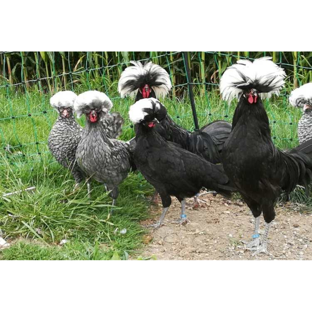 Die Tiere sind mit dem niederländischen Haubengeflügel verwandt.
