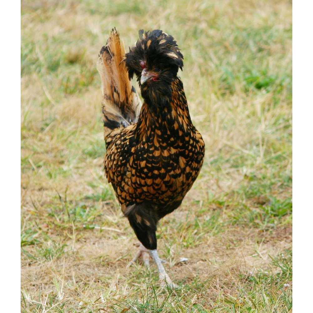 Das Paduaner huhn eine alte holländische Hühnerrasse mit einem Wappen und einem Bart.